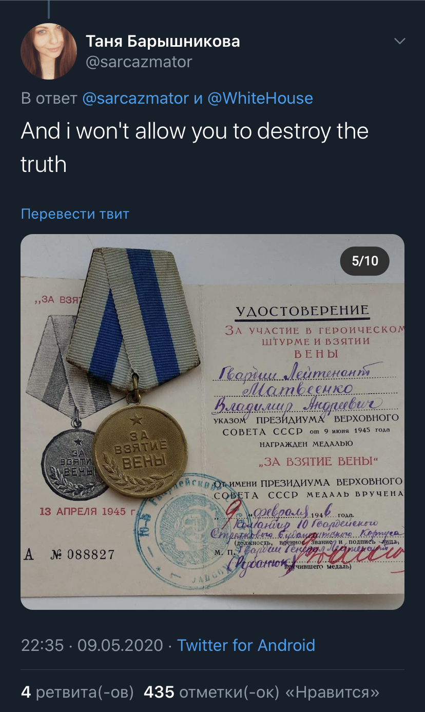 Российские юзеры тоже приняли участие. Многие выложили фотографии людей и документов, подтверждающих статусы и звания солдат, сражавшихся на фронте.