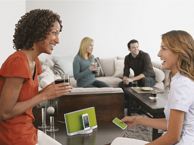 Заметная и яркая док-станция для современных устройств Apple с разъёмом Lightning. Создает фиксированное место в комнате для зарядки смартфона – и окутывает звуком всё помещение. Имеет собственный пульт дистанционного управления, а также универсальный аудиовход для любого внешнего источника звука. В наличии три весенних цвета: зелёный, оранжевый и сиреневый.