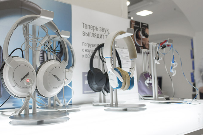 Bose – это не только колонки, но и наушники. Масса их. Все классные, и строгие, и яркие. За счёт богатой истории бренда, в продаже до сих пор находятся предыдущие поколения фирменных накладных наушников, которые могут уступать новым. Любопытно, что об этом факте мне поведали сотрудники шоурума.
