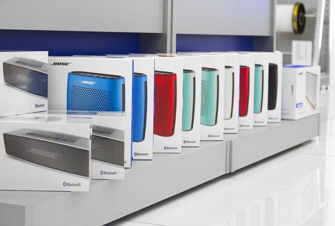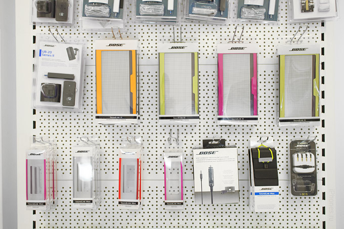 Сразу оговорюсь, что мой визит «запалили» заранее. Я только вошёл, а со стойки уже восклицают: мол, вот он, Никита этот – сумка его. Оказывается, сотрудники шоурума недавно прочитали мой обзор SoundLink III и запомнили последнюю фотку, где колонка лежит в сумке. Вроде мелочь, а приятно.