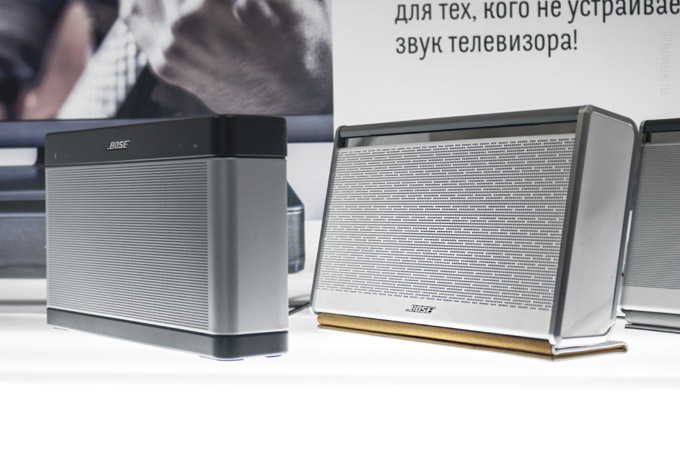 Мы тут же сравнили звучание третьего и второго поколения SoundLink. Всё-таки третье мне нравится больше: лучше стереопанорама, плюс на высокой громкости колонка ведет себя заметно адекватнее. Но визуально старая версия крута, ничего не скажешь.