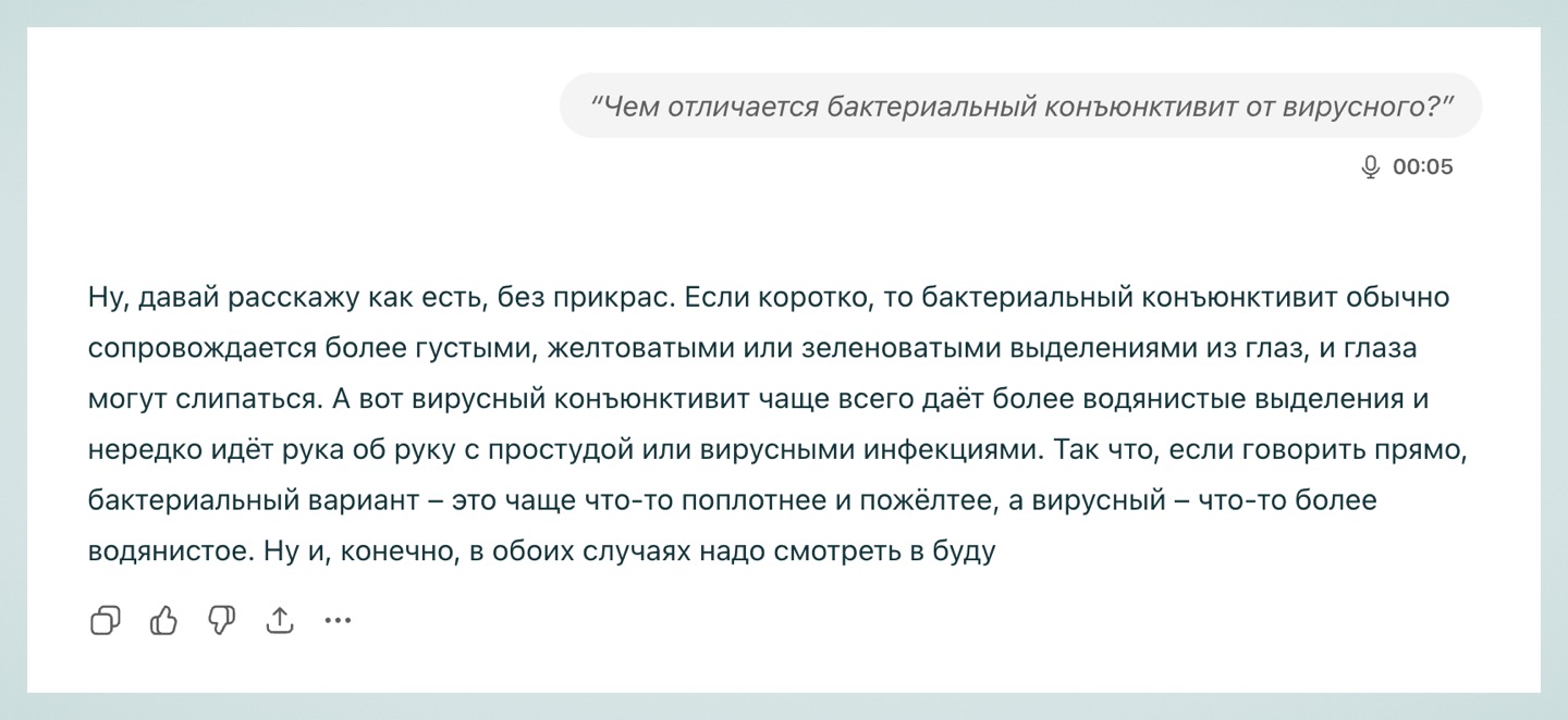 Раньше, если вы хотели продолжить общение голосом, то вам приходилось создавать новый диалог, а теперь вы в любой момент можете переключаться между режимами в одном диалоге и не терять контекст.