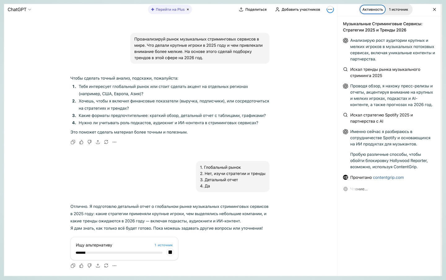 Многим пользователям знаком этот режим и по ChatGPT, и по другим чат-ботам. В режиме глубокого рассуждения ChatGPT может потратить полчаса на ответ, анализируя информацию из различных источников, а также сгенерировать большой объём текста.