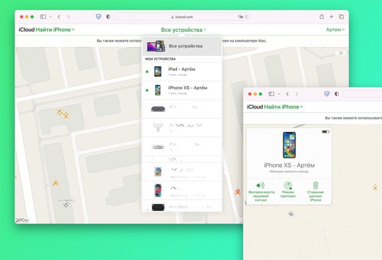 - Откройте сайт icloud.com/find либо приложение Локатор» на другом вашем устройстве Apple.