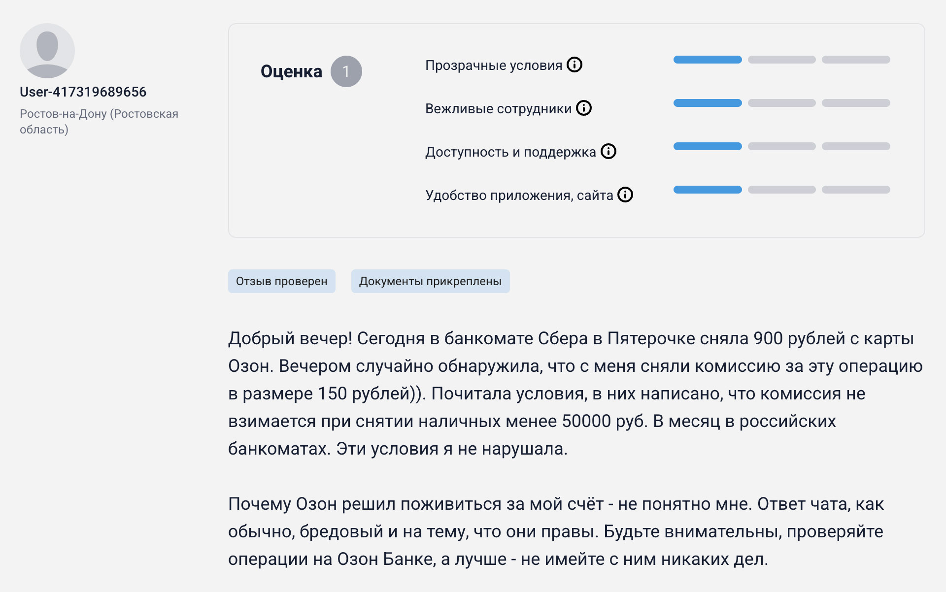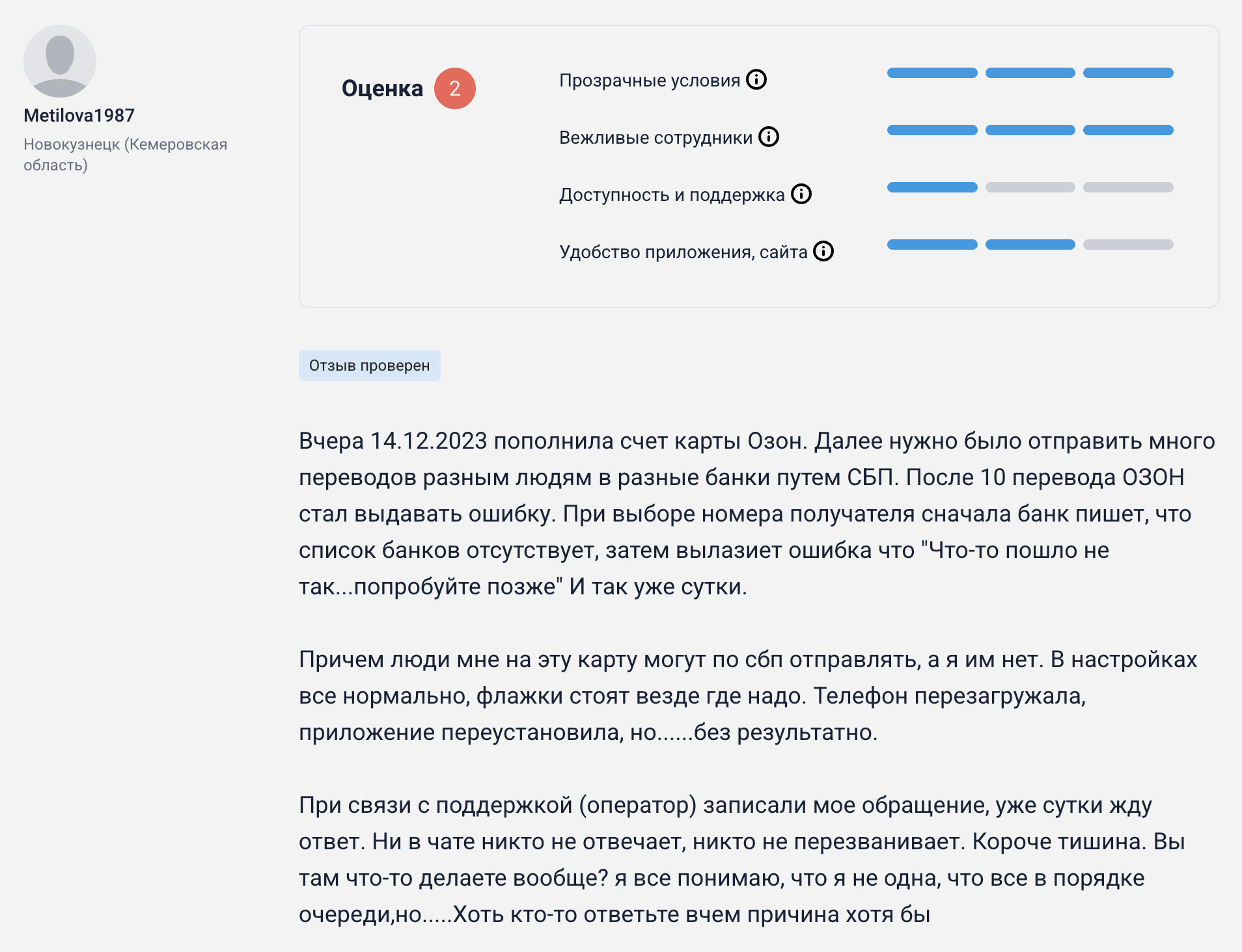 В чем суть жалоб на работу службы поддержки OZON Банка