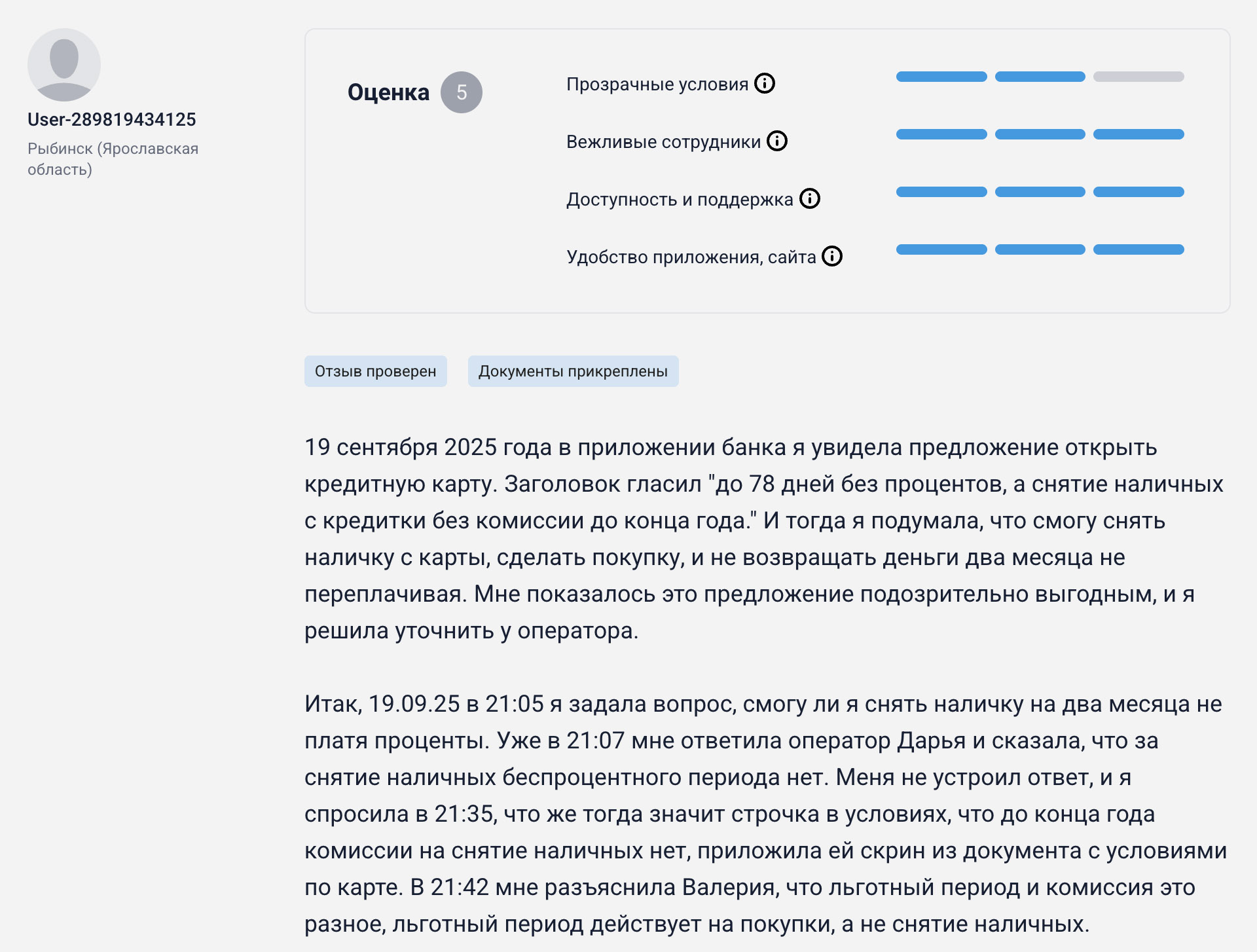 На Banki.ru есть даже положительные отзывы, где люди отдельно хвалят поддержку за то, что им вообще пришлось объяснять разницу между обязательным платежом и общей задолженностью или подробно разбирать, как устроен льготный период. Это симптом: если продукт постоянно надо расшифровывать в чате, значит он не такой прозрачный, как хочет казаться.