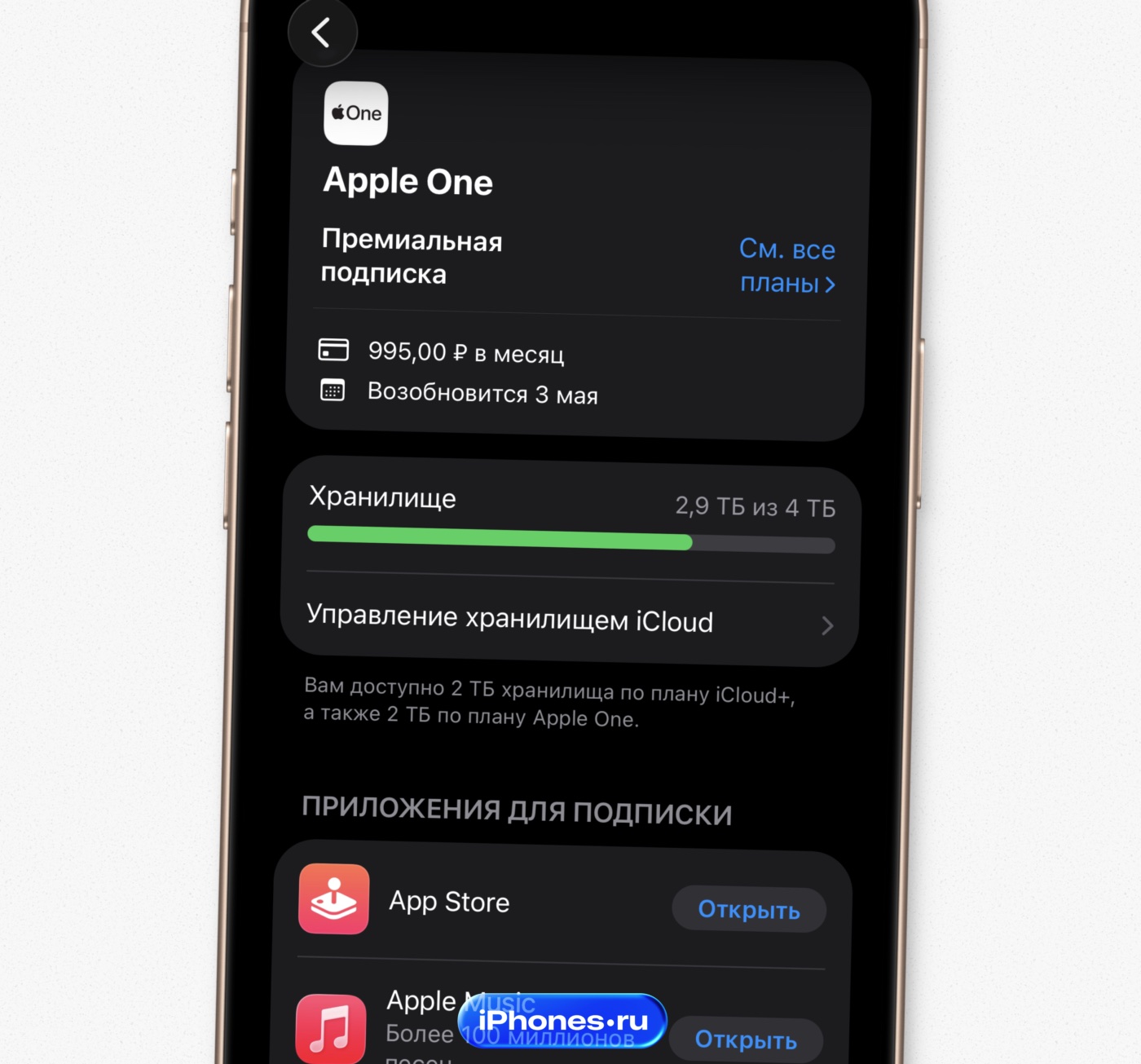 Для сравнения, в регионе РФ за 999 рублей в месяц по подписке Apple One Premier я получал доступ к Music, TV, Fitness+, Arcade и 2 ТБ облака.