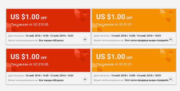 Они бывают трех типов: красные, желтые и белые. Первые позволят получить скидку на любой товар, вторые действуют на определенные магазины, а третьи – на избранные товары определенных продавцов.