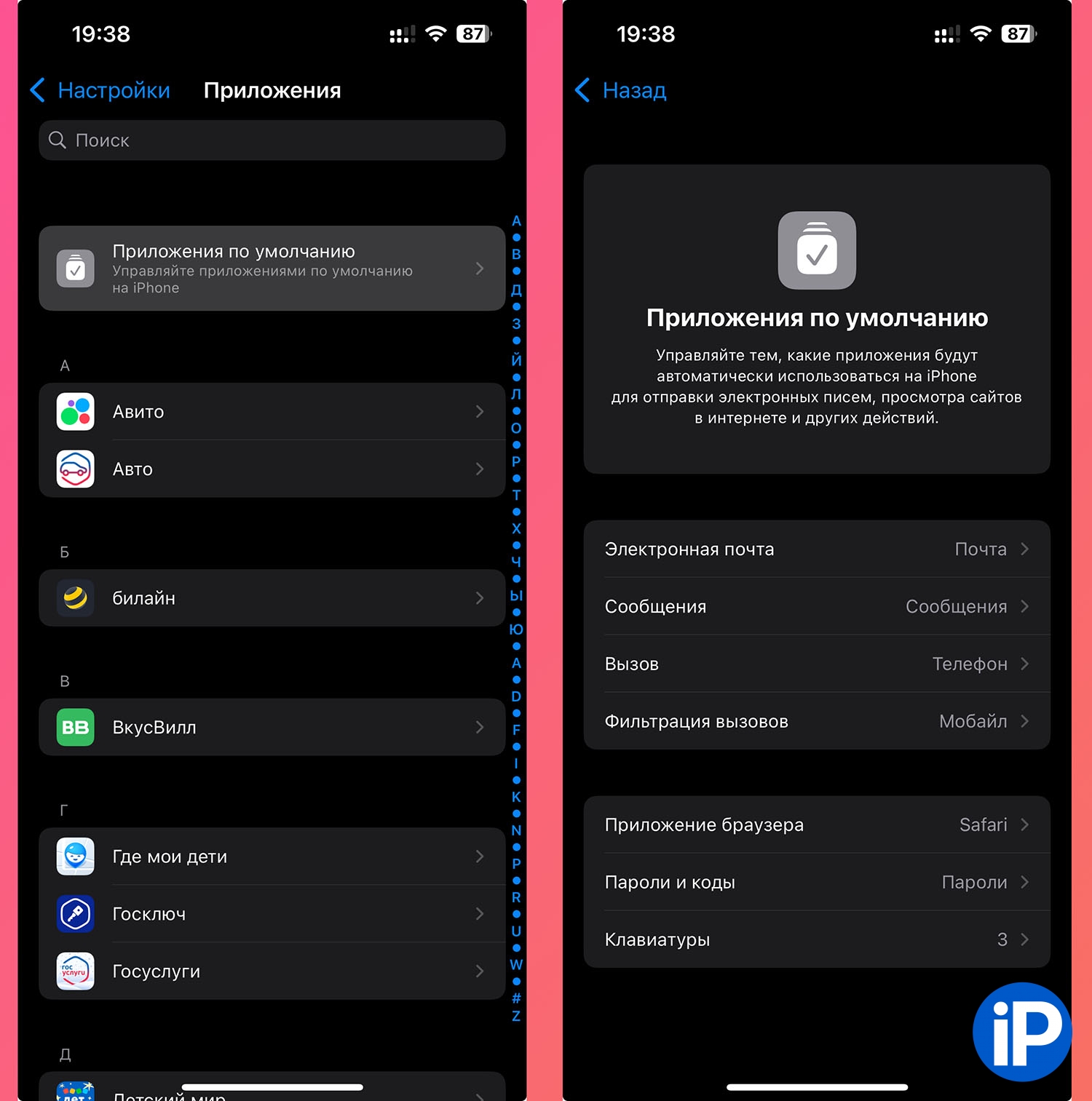 Возможность менять некоторые стандартные приложения на сторонние была в iOS и раньше, но лишь в iOS 18.2 разработчики догадались собрать эти опции из разных уголков настроек в одно меню.