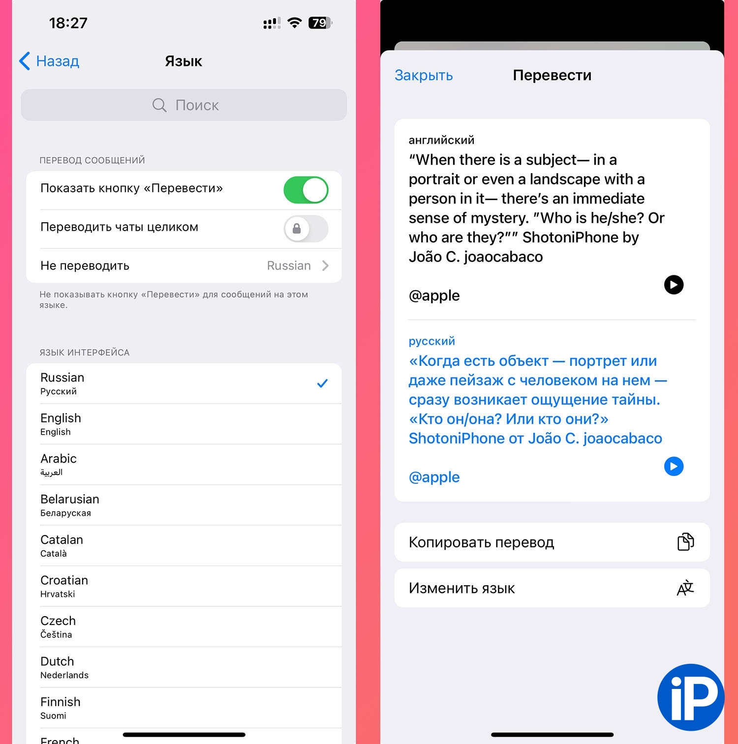 После этого можно удержать палец на любом сообщении и включить его перевод.