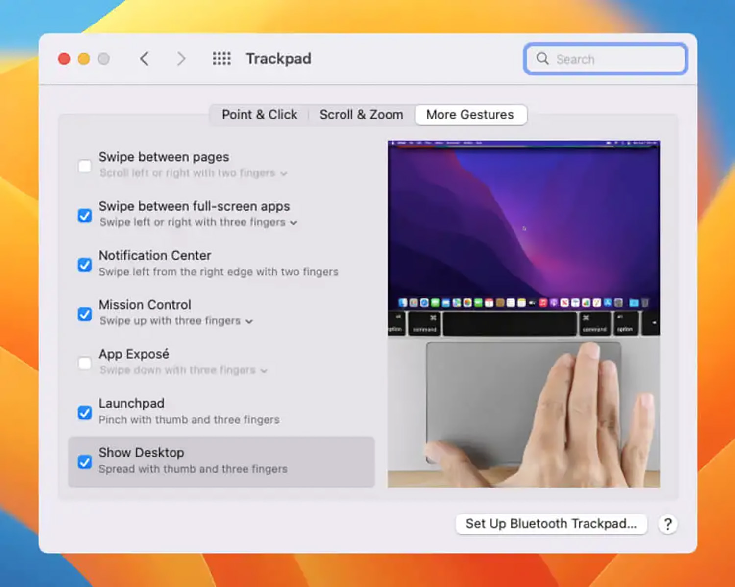 А в macOS Sonoma рабочий стол отображается, если просто нажать мышью в любой его части. Если фишка мешает, ее можно отключить в настройках.