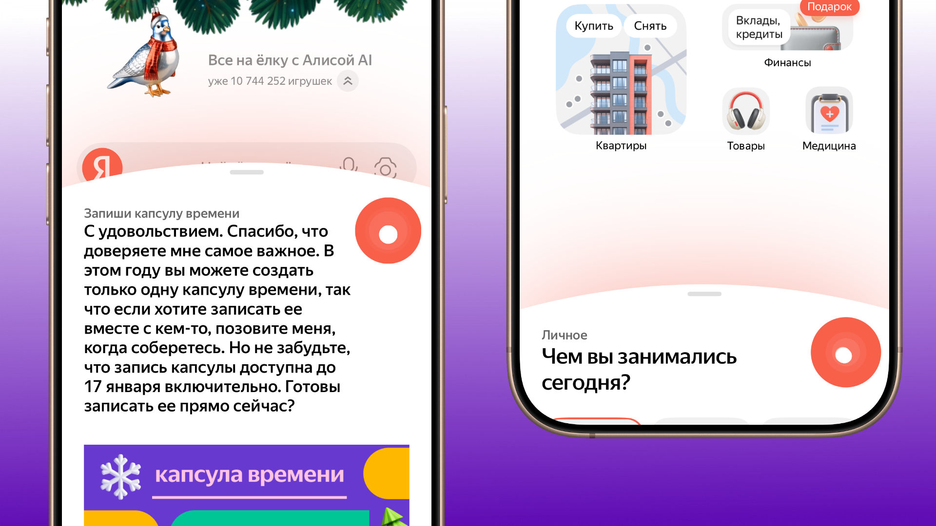 Алиса позволяет записать голосовое послание самому себе и открыть его ровно через год. Достаточно сказать: «Алиса, запиши капсулу времени».