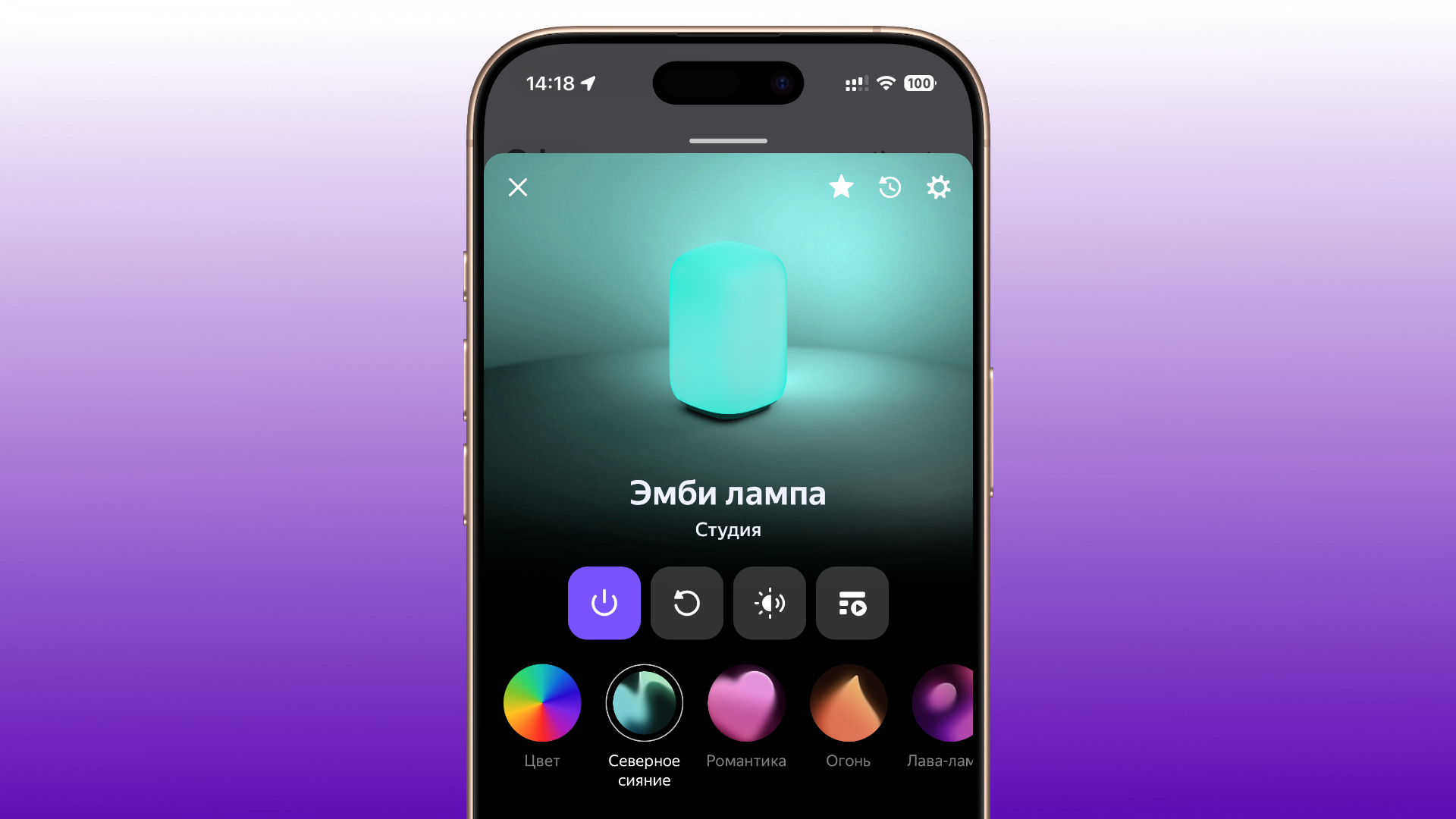 В эмби-лампе Яндекса есть режим с мягкими переливами зелёного, синего и фиолетового света. Он так и называется «Северное сияние», мы рассказывали про него в обзоре.