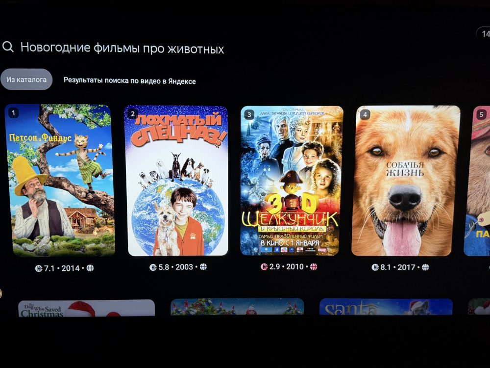 В ТВ Станциях и Станции Макс Алиса умеет уточнять поиск фильмов голосом по жанру, рейтингу или сюжету. Например, можно попросить новогодние фильмы про животных и затем отфильтровать их по оценкам.