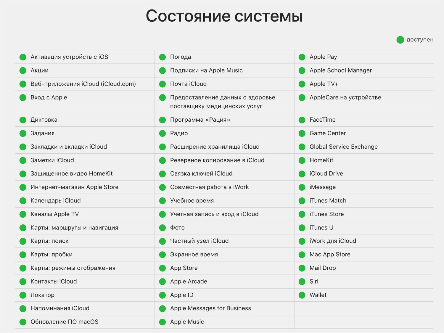 Если индикатор горит зеленым, значит у Apple все в порядке, продолжаем искать причину дальше.