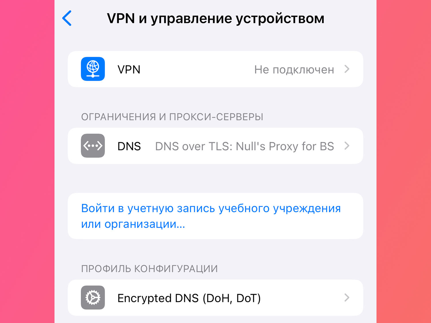 Если устанавливали профили для приложений, работы недоступных игр или сервисов, нужно удалить их. Например, профиль DNS из этой статьи может мешать загрузке приложений.