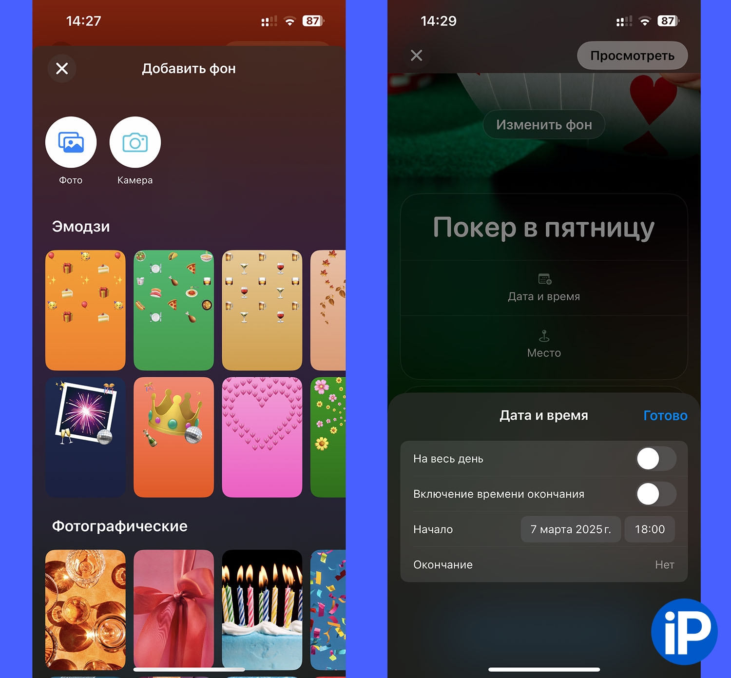 4. Настройте дополнительные параметры приглашения: одобрение гостей, если организатору нужно подтверждать участие каждого гостя, и скрытие фоновой картинки, пока приглашенный не откроет сообщение, если это какой-то сюрприз.