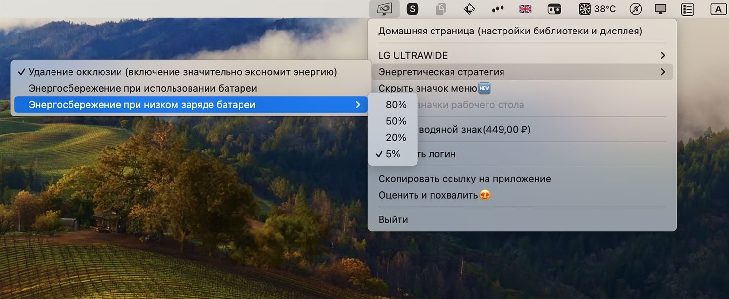 ▶ выключить анимацию при определенном уровне заряда батареи MacBook.