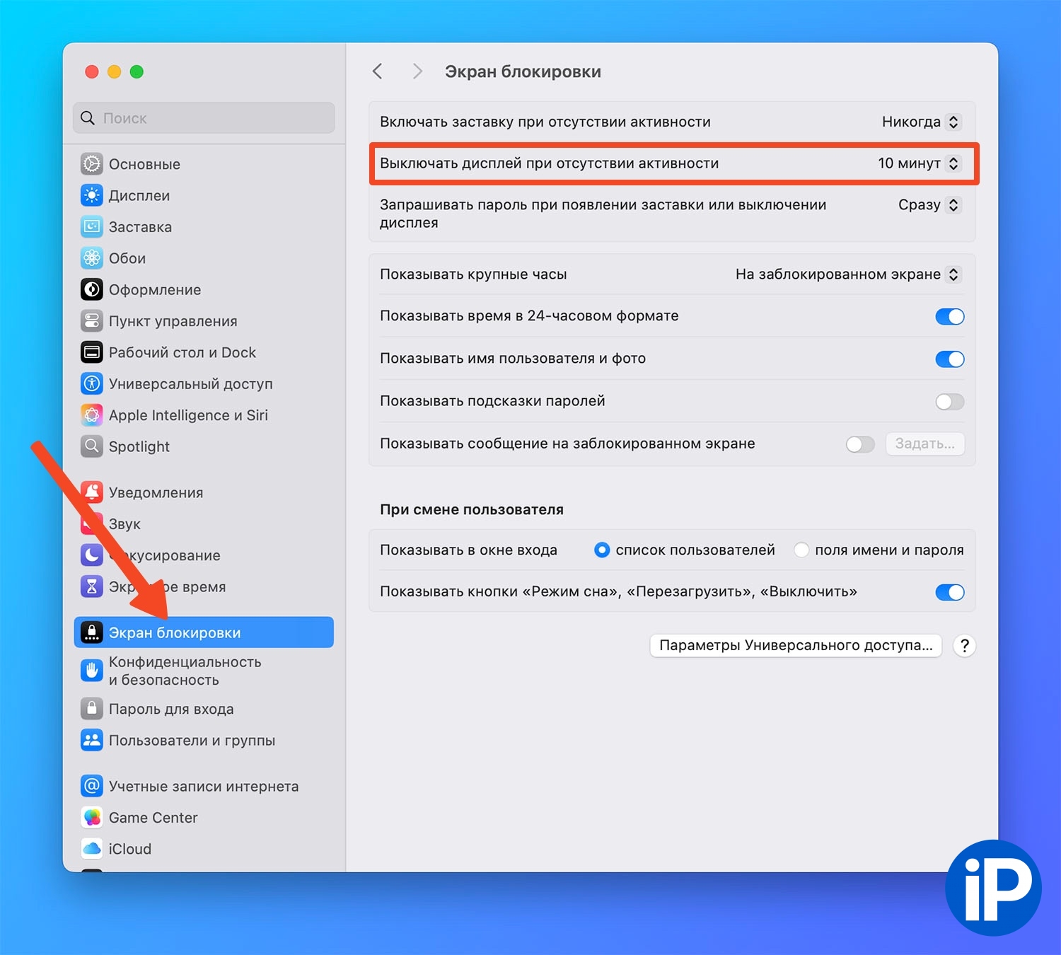 Если используете внешний дисплей и хотите отключать его, кроме указанной опции включите еще одну по пути Системные настройки – Энергия – Не переходить в режим сна автоматически при выключенном дисплее. Так сможете отключать монитор, а Мак при этом продолжит работать.