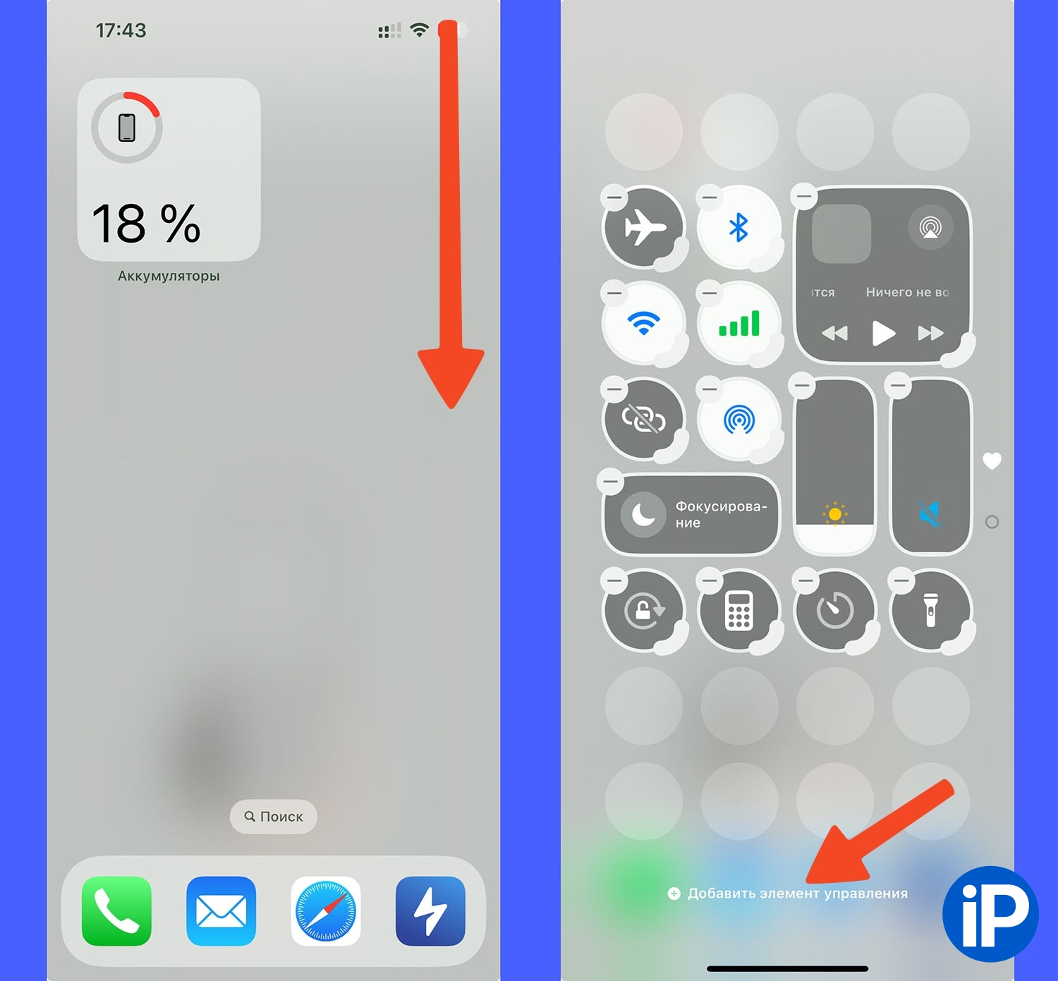 1. На iPhone откройте Пункт управления (шторку с системными переключателями).