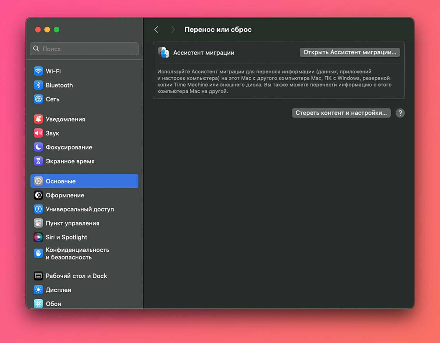Внимание! Данная инструкция подойдет для Mac с macOS Ventura и macOS Sonoma. В более старых версиях системы такой опции нет. Сбрасывать систему нужно по этой инструкции.