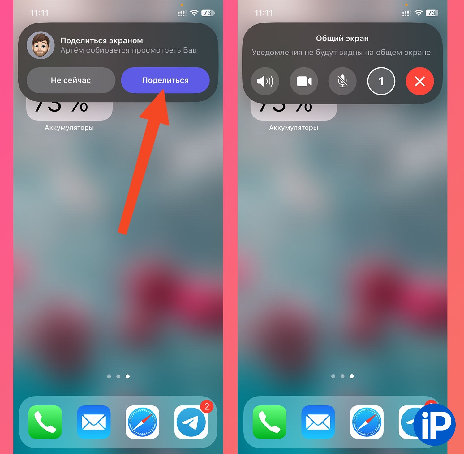 📱 Демонстрация экрана через мессенджеры. Эта фишка появилась с релизом iOS 15. Многие мессенджеры позволяют показать экран собеседнику во время звонка.