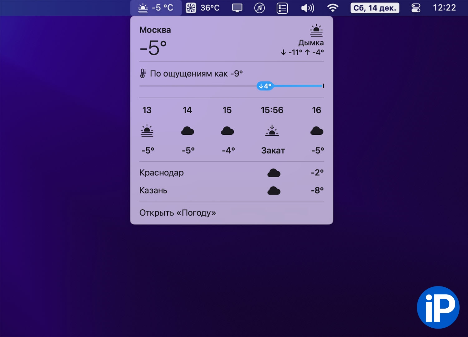 В новой macOS 15.2 появилось несколько полезных возможностей и настроек. Одна из фишек – прогноз погоды прямо в строке меню системы.