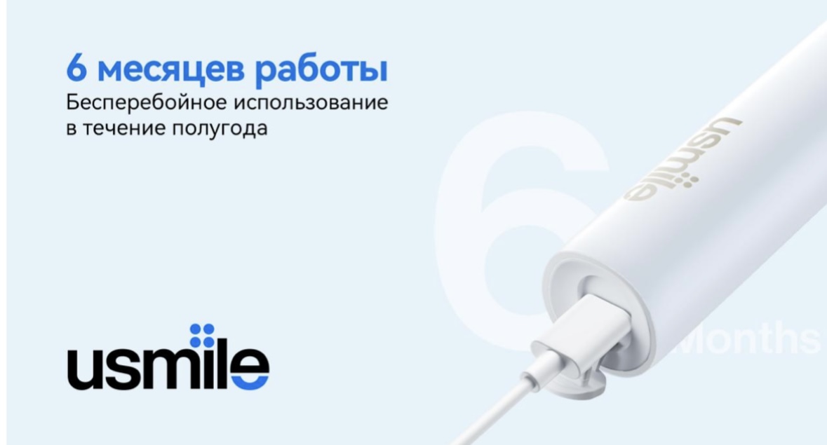 Работает Y10 Pro до полугода на одном заряде. Подключается по порту USB-C. Больше не придется беспокоиться о том, что ваша щетка в любой момент может разрядиться.