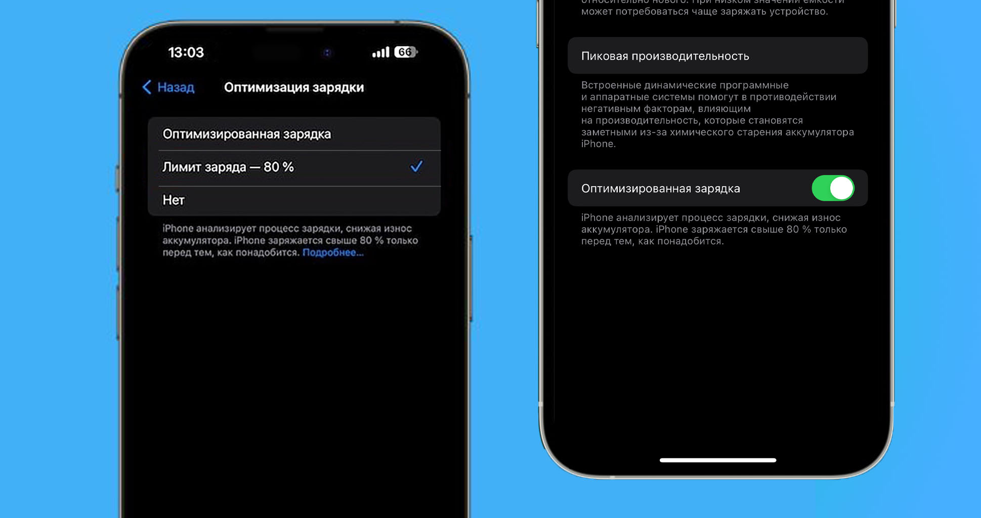 На iPhone 15, если установить лимит, уровень заряда не будет подниматься выше 80%. Если лимит не устанавливать, смартфон будет заряжаться как и остальные гаджеты – сначала до 80%, а ближе к времени отключения от зарядки до 100%.