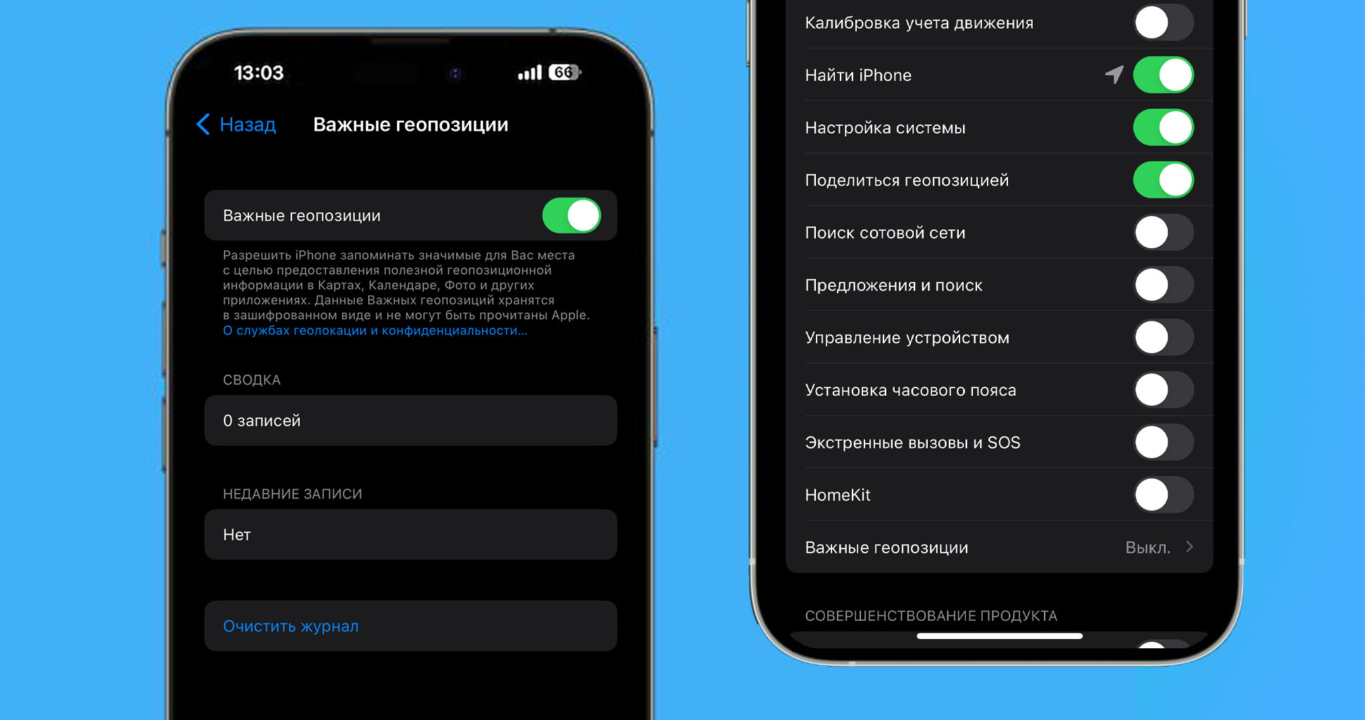 ▶ Выберите пункт Важные геопозиции и активируйте опцию.