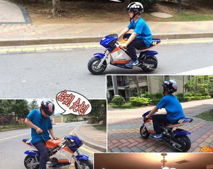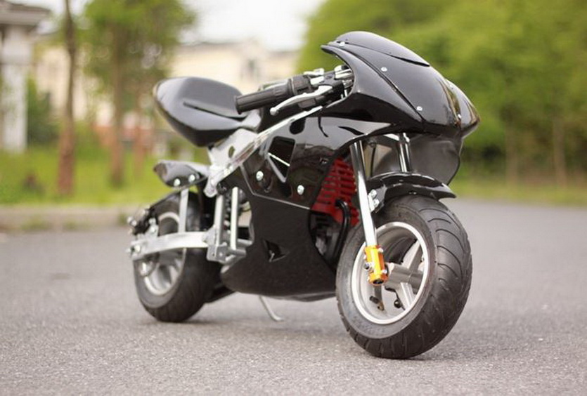 Полноценный микромотоцикл с двигателем внутреннего сгорания. Как настоящий, только ну очень маленький. Хотя некоторые допущения все же присутствуют, внешне малютку практически не отличить от полноценного спортивного байка.