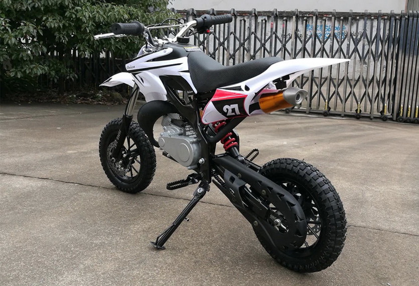 В продаже на AliExpress существует 2 варианта этого микромотоцикла: «спортивный» за 30 700 руб. и «эндуро» за 25 900 руб. За улучшения в виде металлической подножки, колес с камерой и амортизированной передней вилки нужно отдать ещё 2 600 руб.