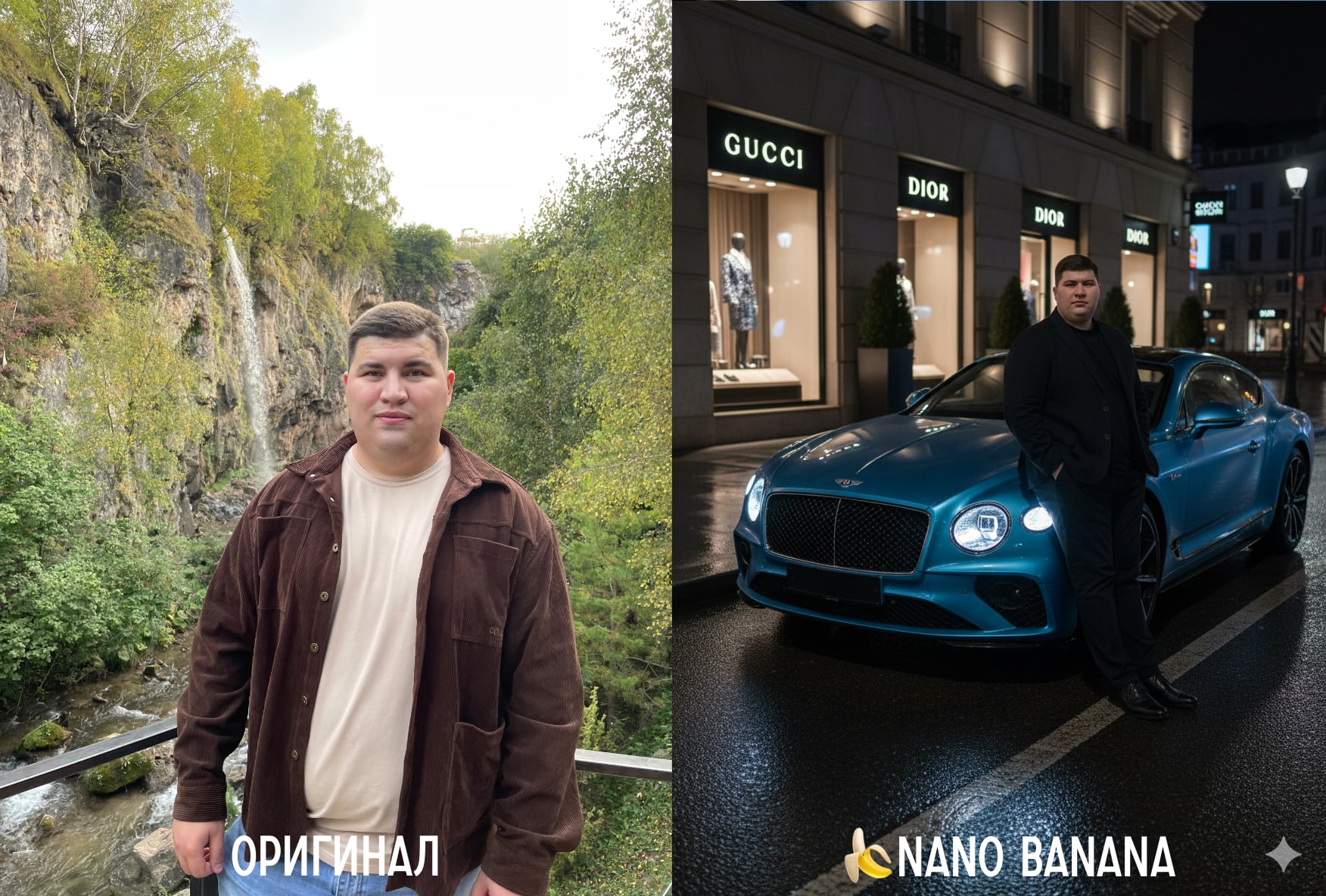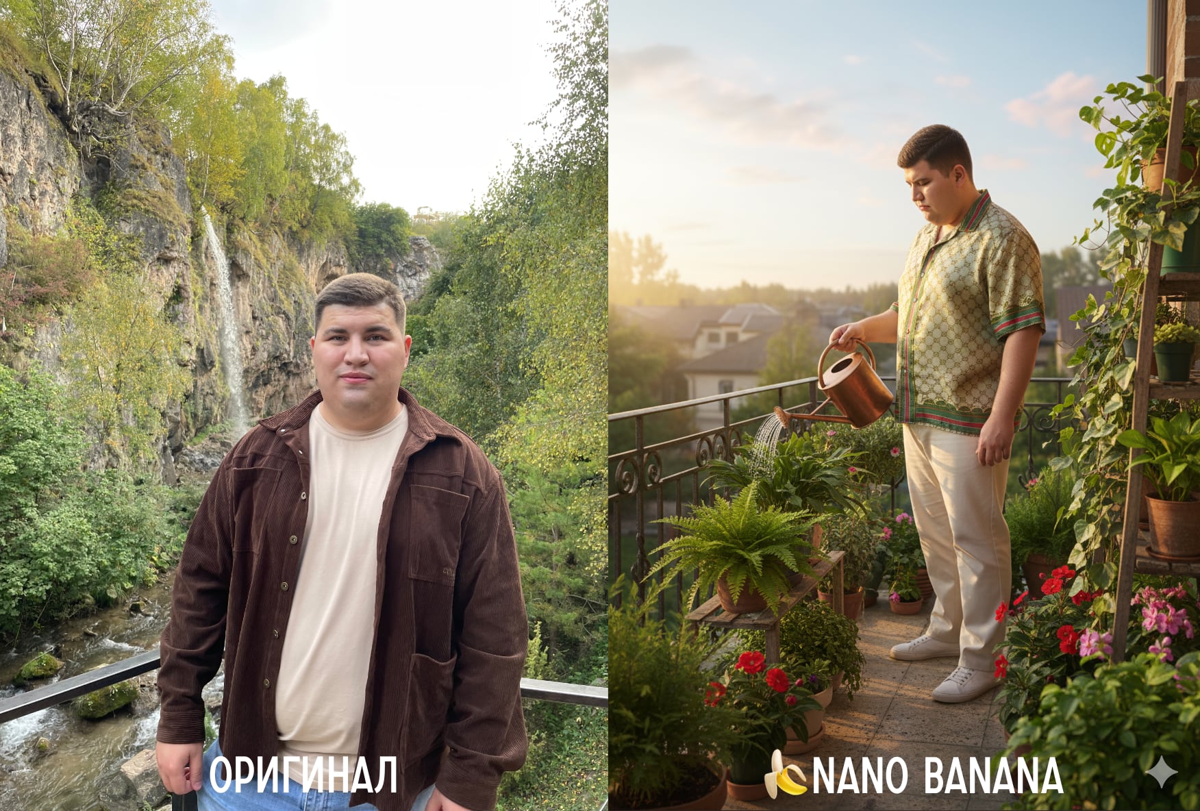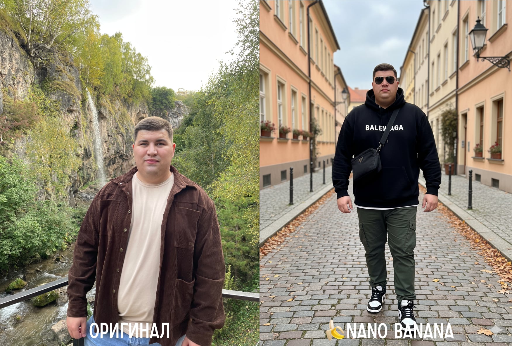 Мне стало интересно, как они на самом деле справляются с этой задачей (спойлер: очень хорошо). Я просто загрузил свой снимок в нейросеть Nano Banana и написал несколько промтов.