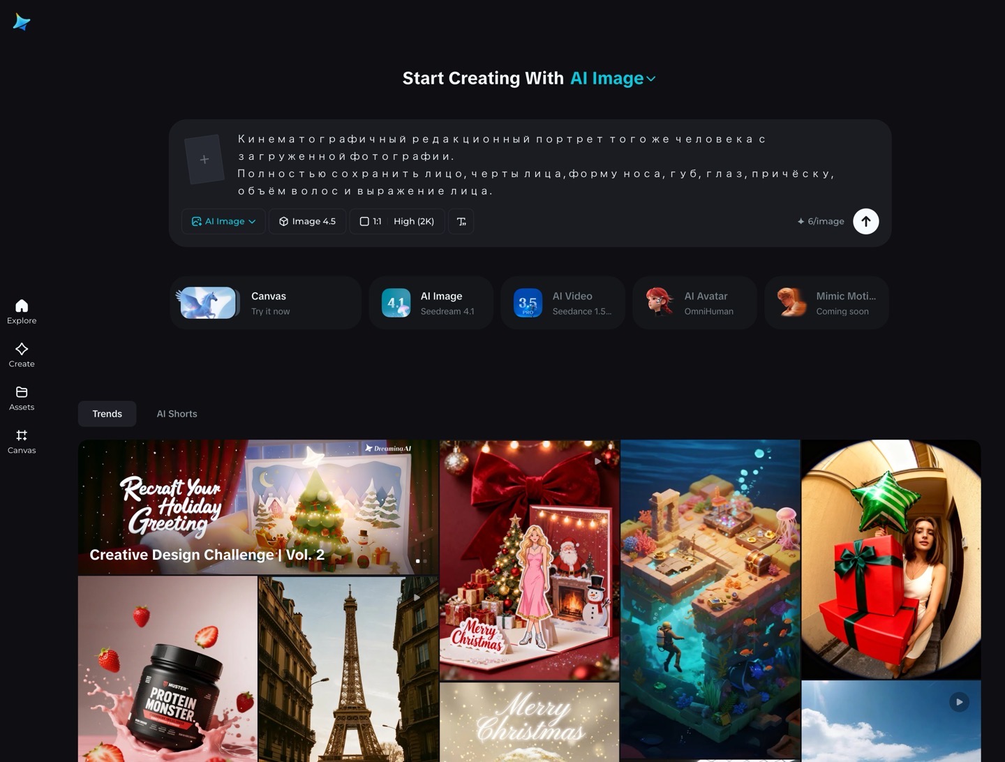 Главная страница Dreamina