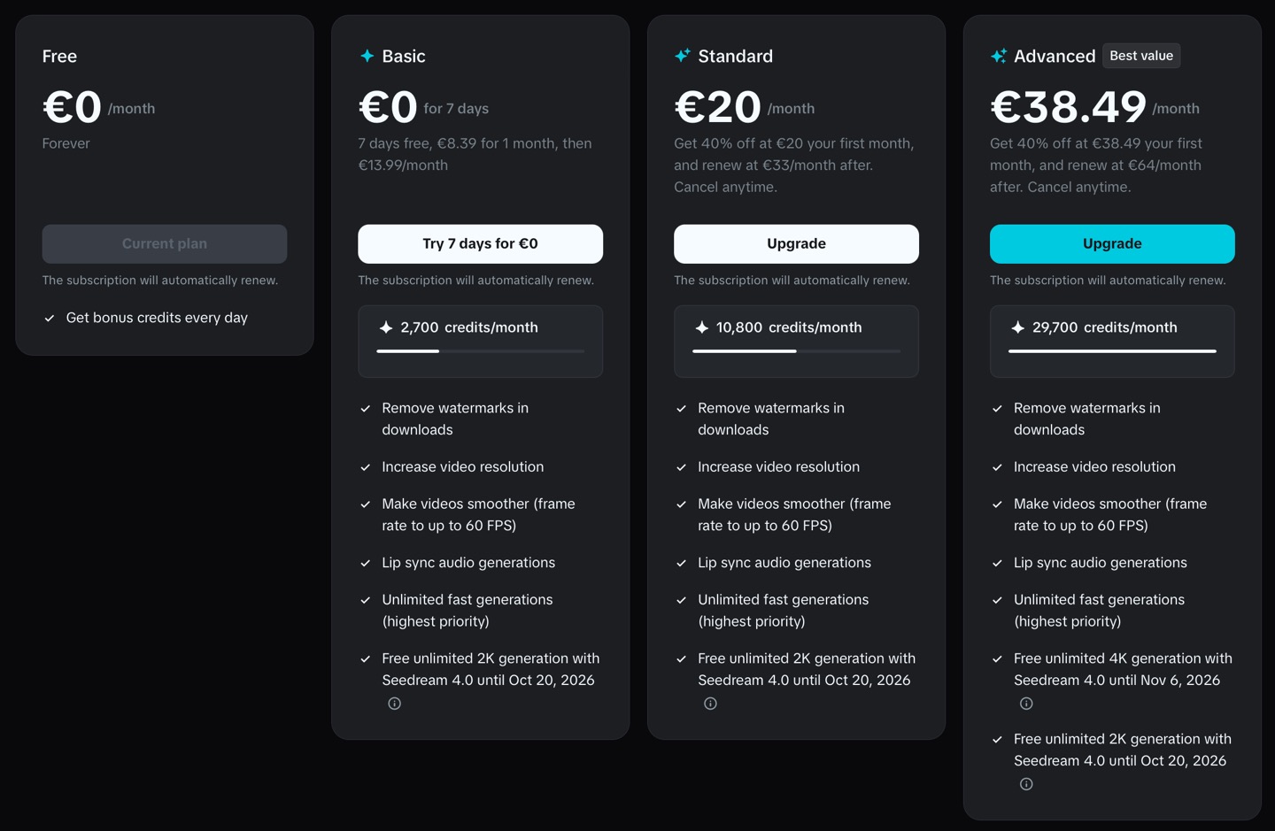 Самая дешевая подписка (Basic) в Dreamina обойдется в €14 (~1200 руб.), в России официально оплатить её нельзя.