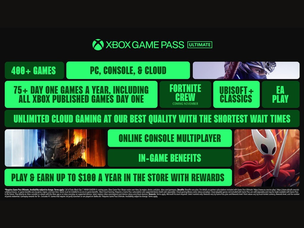 📍Game Pass Ultimate — самая дорогая подписка, в которую игры от Microsoft и партнеров попадают в день мирового релиза, полный каталог включает в себя более 400 игр, а еще интегрированы Ubisoft+ Classics и EA Play, это сервисы с играми вы поняли каких компаний. Не свежими, только классика. Ну и на сдачу туда добавили подписку Fortnite Crew.