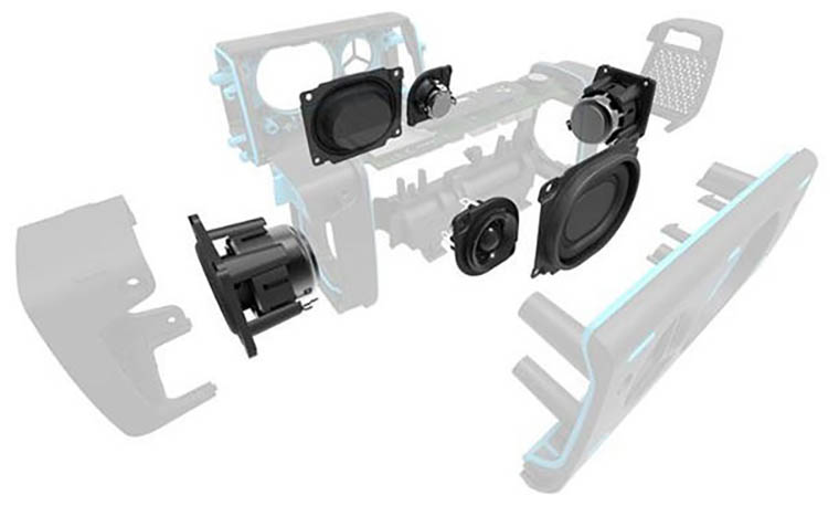 Что касается «внутренностей», то тут специалисты Fugoo воплотили все самые современные решения. Во-первых, это запатентованная технология Fugoo’s Core-X, обеспечивающая качественную передачу сигнала без искажений. Во-вторых, колонка оснащена шестью динамиками, в основе которых использованы мощные неодимывые магниты: два для излучения низких и средних частот, два высокочастотных и два для усиления басов.