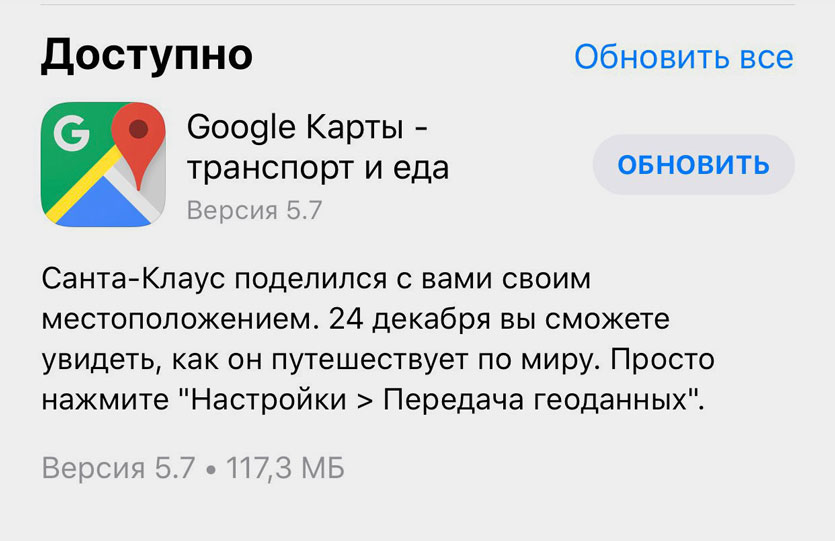 Google уверена, что большинство пользователей смартфонов все еще верят в Деда Мороза. Последнее обновление приложения Google Карты откровенно умиляет своей наивностью.