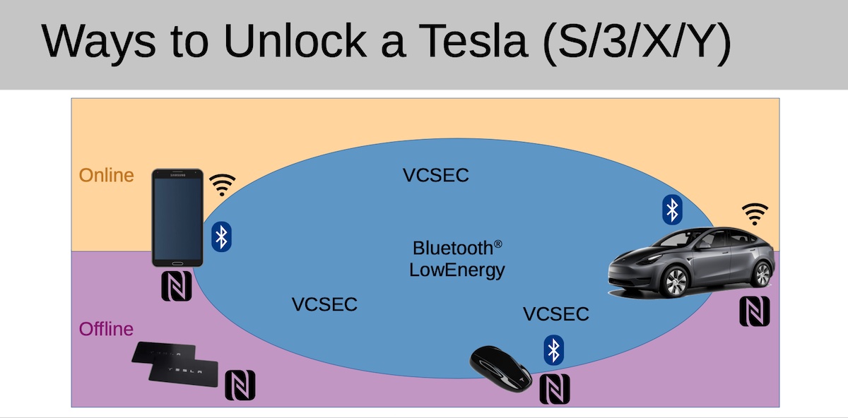 То есть за этот интервал любой желающий может подключить к Tesla собственный ключ. Официальное приложение Tesla не позволяет регистрировать ключи, если оно не подключено к учетной записи владельца, но Херфурт заметил, что авто обменивается сообщениями VCSec с любым устройством Bluetooth Low Energy или BLE поблизости.