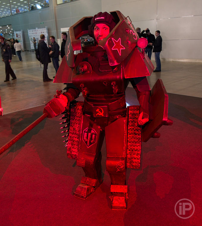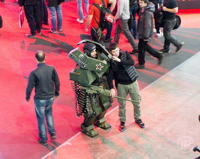 Например, вокруг огромного стенда Wargaming бодро вышагивал человек-танк: