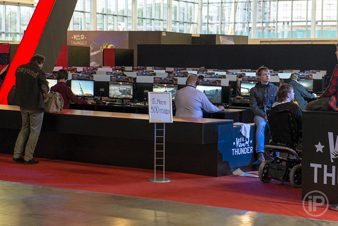 Не менее бодрый стенд Gaijin Entertainment с ее военной MMO War Thunder, в которой помимо самолетов скоро игрокам будут доступны и танки: