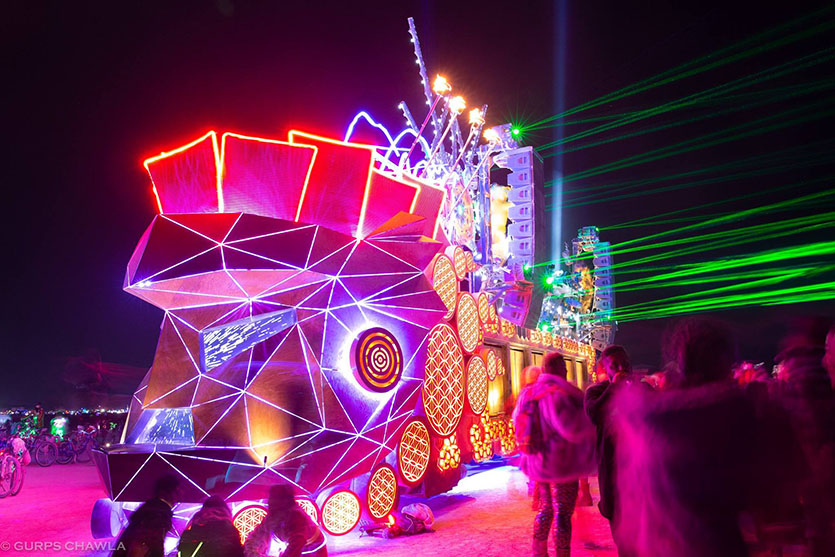 К сожалению, со слов опытных участников Burning Man в этому году было большое количество скромных проходных арт-объектов.