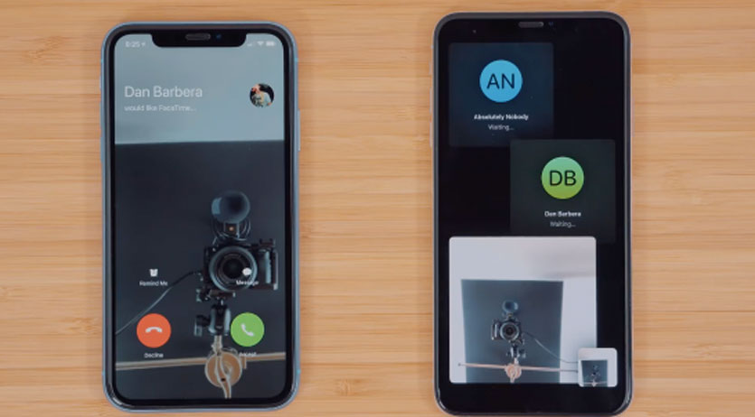 На iPhone слева на звонок еще не ответили, но на iPhone справа уже показывается видео и пишется звук с принимающего айфона.