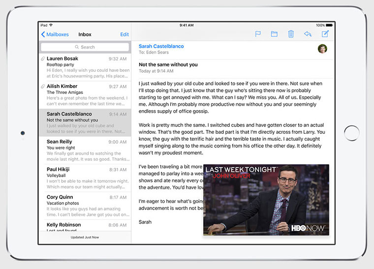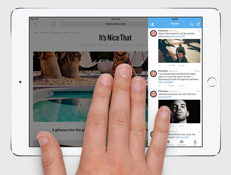 В этом режиме (читайте, как работает Split View в El Capitan) делалегко менять окна местами либо добавлять другие приложения из переработанного меню многозадачности. Все сделано интуитивно и просто, причем даже мультипальцевые жесты действуют в каждом из окон. Функция просто работает, как и другие фишки iOS. Хотя, посмотрим, как это будет работать в реальных условиях, а не на презентации.