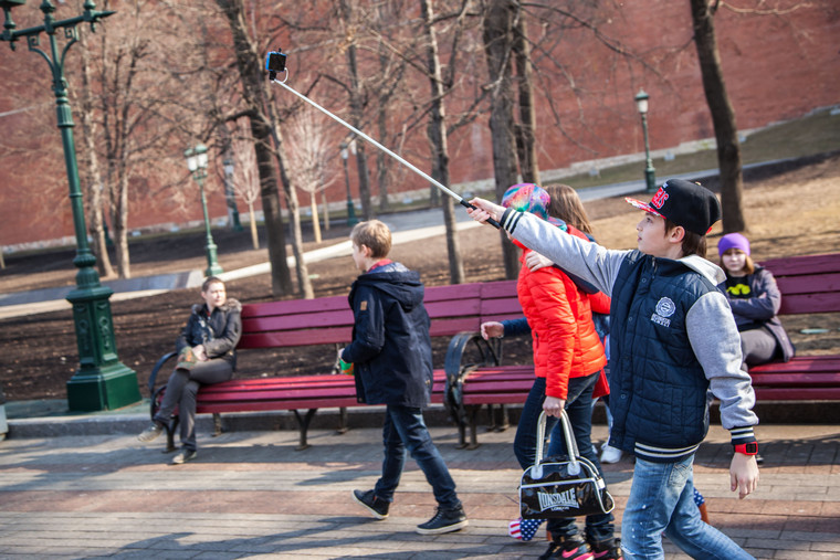 Палка для «селфи» становится незаменимым помощником для группы школьников во время экскурсии.