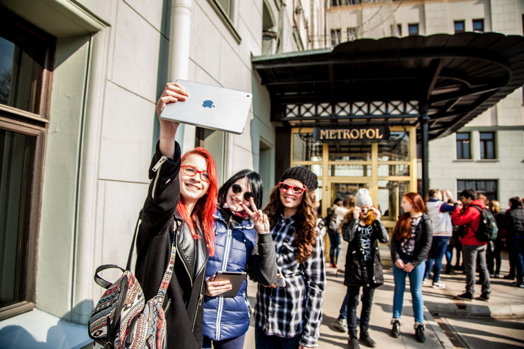 Российские отели регулярно принимают зарубежных гостей. Среди них можно встретить как голливудских звезд, так и музыкальные группы. Сегодня около Метрополя произошёл именно такой случай – о приезде знаменитости говорит большое скопление фанатов. До Марса всего 30 секунд, но чтобы выложить фотку в Instagram с кумиром, хватит всего пяти.