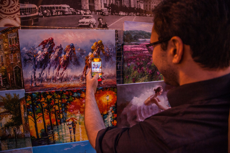iPhone популярен среди творческий людей: художников, музыкантов, артистов. Вот и на Арбате можно встретить любителей искусства.