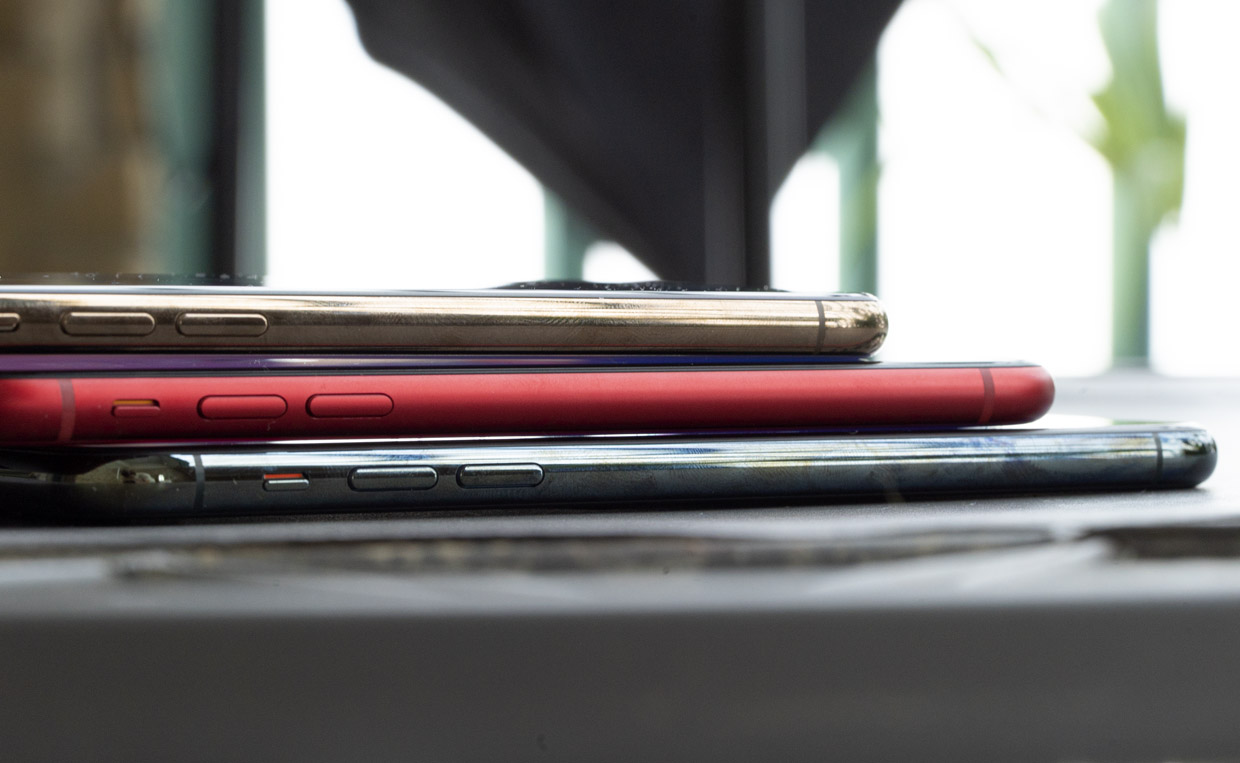 Когда фотографировал iPhone 11 Pro Max прошлой осенью, одной из идей было положить несколько айфонов друг на друга: Pro Max, Pro и обычный одиннадцатый. Просто чтобы показать разницу в размерах корпуса и, возможно, его толщины.