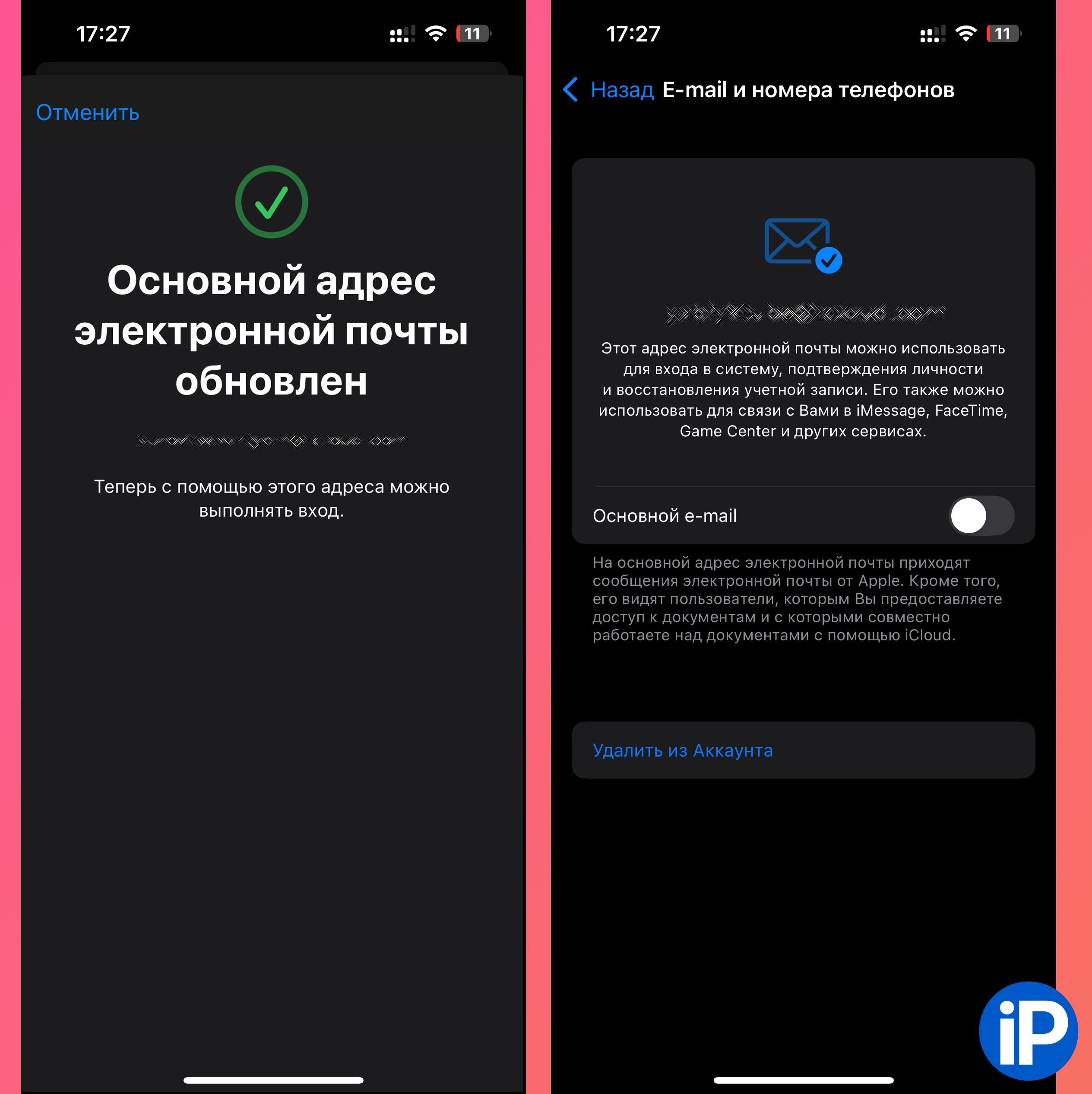 Адрес icloud com удалить не получается, даже если основной адрес уже другой