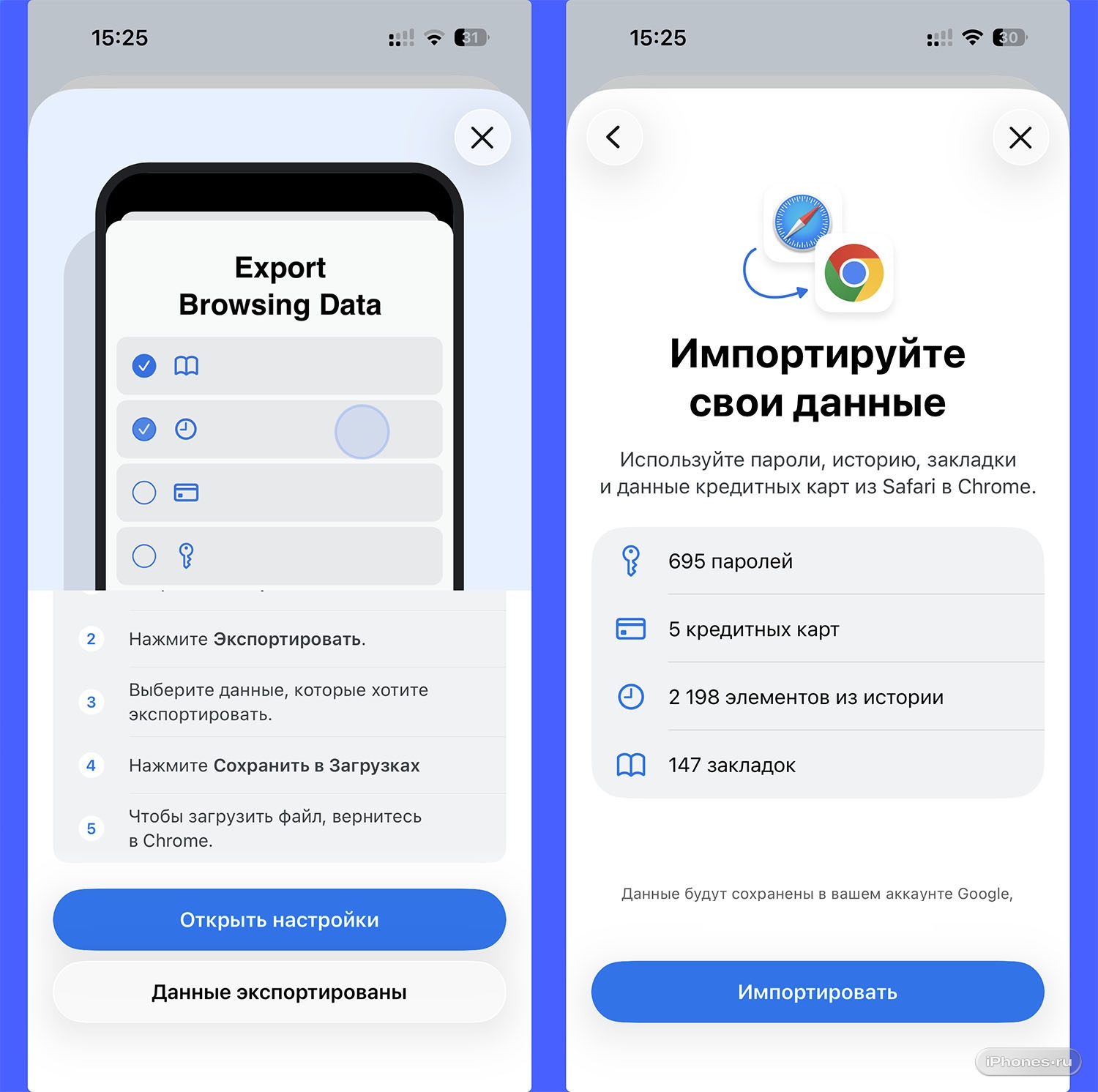 Как перенести все данные из Safari в Chrome